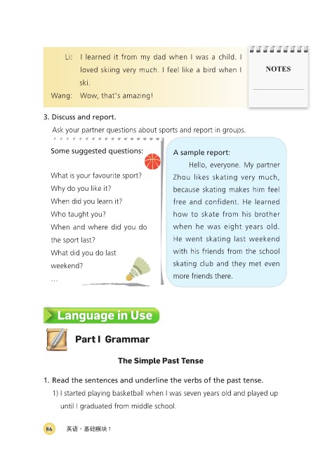 Ask your partner questions about sports and report in groups.
